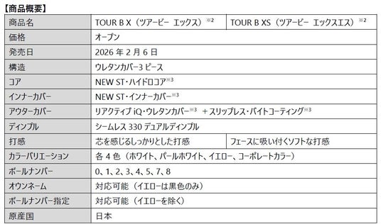 ブリヂストンスポーツ株式会社は、世界のトッププロの高い性能要求に応え続けるゴルフボール『TOUR B X/XS』の最新モデルを2月6日に発売します。価格はオープンです。