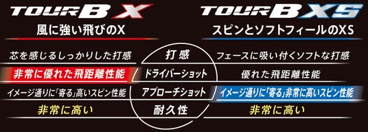 飛距離に優れた「X」と、スピン性能に秀でた「XS」。どちらの「B」も世界のツアーレベルの選択肢としてゴルファーの最高のパフォーマンスをサポートします。