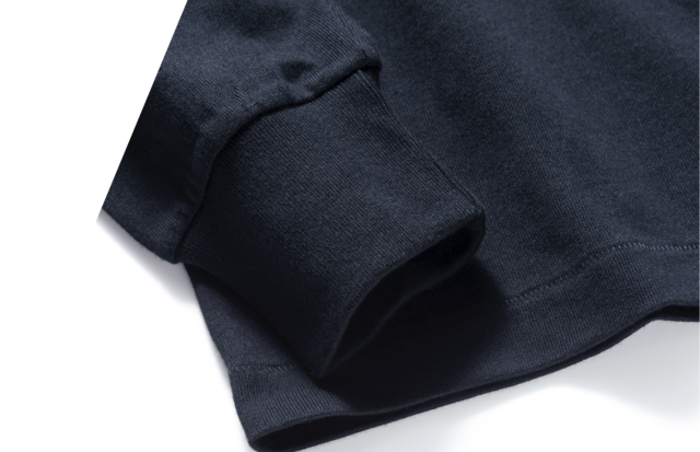 袖口はリブ仕様になっており、たくし上げるなどのアレンジも可能。裾部分にはブラインドステッチを使用し、クリーンな印象に仕上げています。