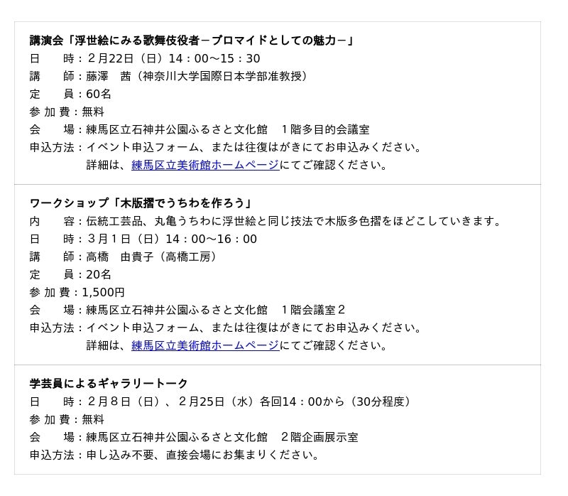 展示・イベントに関するお問い合わせ練馬区立美術館 電話:03-3577-1821