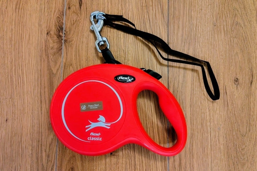 【伸縮リードの無料貸出】ワンちゃんがビーチをのびのび行動できるよう、伸縮リードを無料貸し出しします。運動不足解消やストレス軽減にご利用ください。