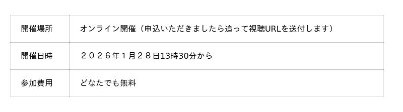 - 当日視聴方法 :当日はZoomにて配信