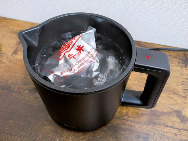 牛丼の具やカレーなど、1人分のレトルト食品ももちろん温められます。