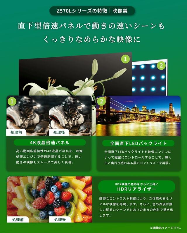 直下型倍速液晶で映像がくっきりなめらか。レグザの4K液晶テレビ「Z5 series Z570L 50V型」が45%オフの大特価!