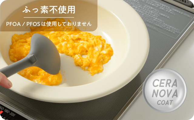 セラミック加工がされているので、油で慣らさなくても食材が焦げ付きません。