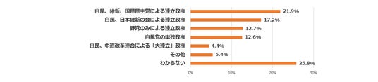 選挙後に望ましい政権は自維国連立21%、自維連立17%