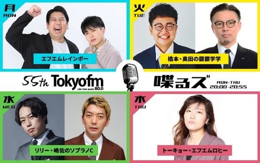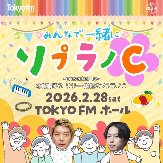 TOKYO FMで毎週水曜20時から放送中の見取り図リリー&ニューヨーク嶋佐がパーソナリティを務めるレギュラー番組「水曜喋るズ『リリー・嶋佐のソプラノC』」では、2026年2月28日(土)、TOKYO FMホール(東京都千代田区)にて、初の番組イベント「みんなで一緒にソプラノC presented by 水曜喋るズ リリー・嶋佐のソプラノC」を開催します。
