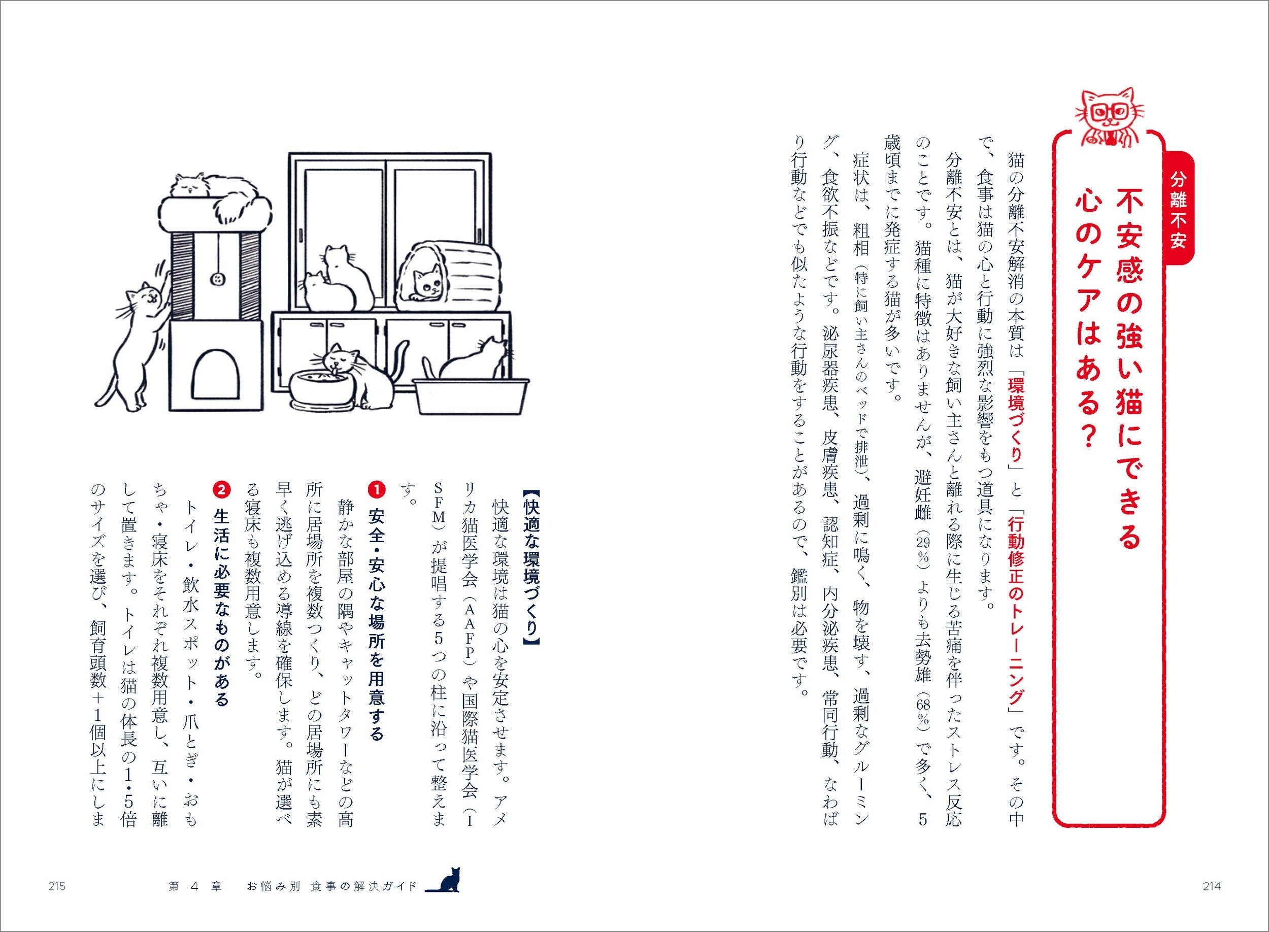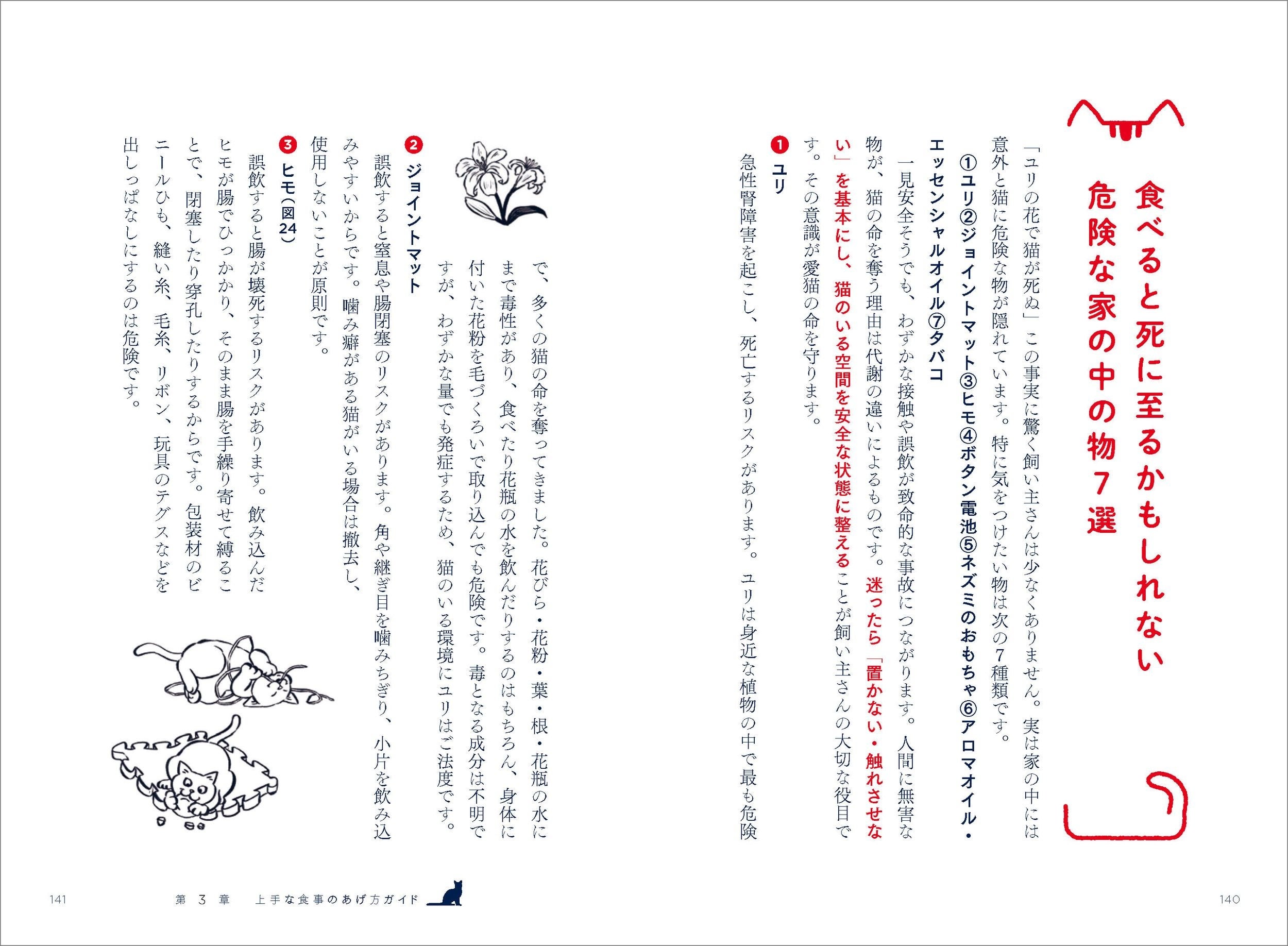 フード選びのポイントから上手なあげ方、アレルギー、尿路結石、腎臓病、心臓病などの疾患を持つ愛猫への食のアドバイスまで幅広く網羅