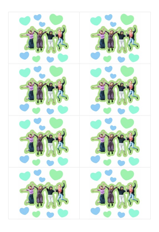 アプリで作って保存すれば、コンビニエンスストア(ファミリーマート、ミニストップ、ローソン)のマルチコピー機でプリントできます。プリントしたシールシートをハサミで切ってフレークシールとしてお使いいただけます。