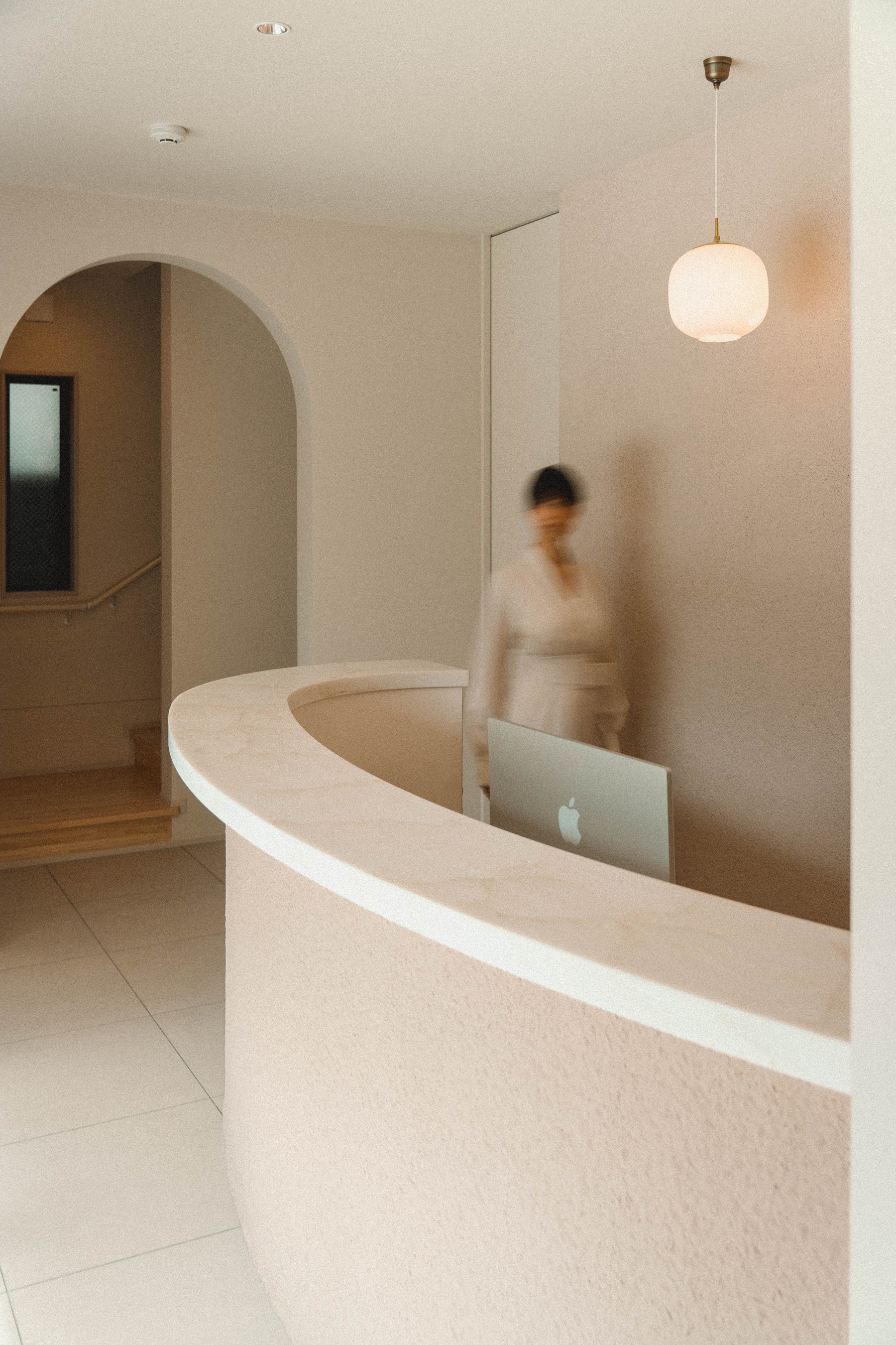 冷たい印象を与えがちな医療空間を、自然から着想を得た7色のブランドカラーで設計。内装にも随所に「丸み」を帯びたフォルムを採用。 専門用語を避け、相手を想像し理解しながら“語りかける”言葉選びを徹底する石川院長の人柄を感じていただけるよう、医師とカジュアルに話せる「対話の場所」として診察室をデザインしています。
