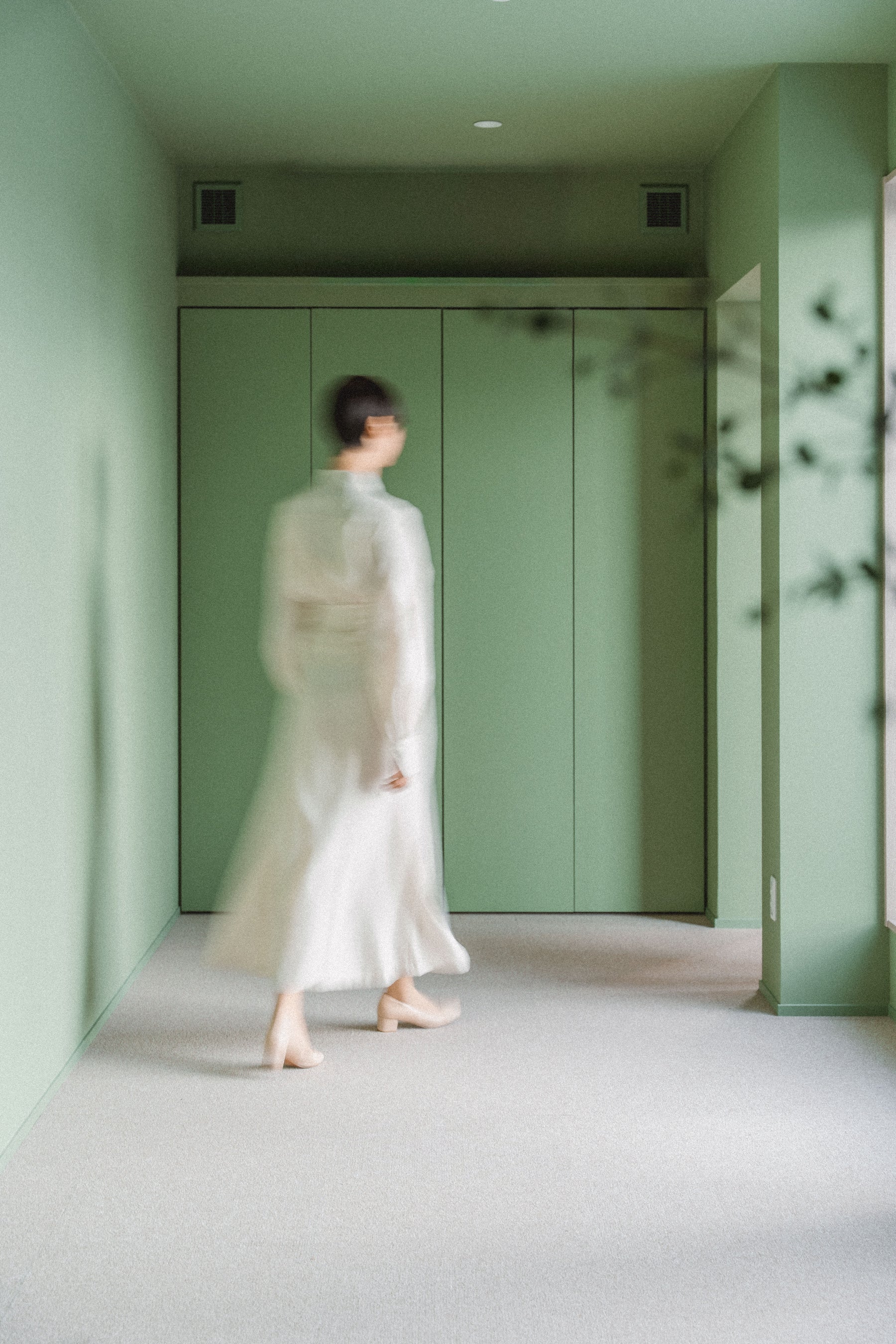 婦人科の内診は負担のある時間であることを実体験としてもつ女性チームとして、内診室を少しでも安心でき、入るのが楽しみになる空間にしたいという思いから、内診室の壁面にはクリエイター 三平悠太氏とコラボレーションし、「She who stands with me」をコンセプトとしたアートワークを施します。