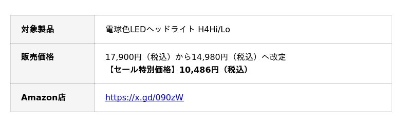 【注目】電球色LEDヘッドライト H4 Hi/Lo