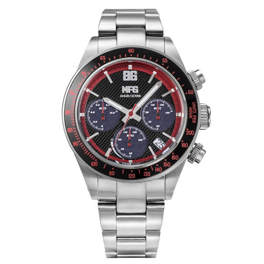 全体をトヨタ86GT(後期)同様のレッド×ブラックで彩色。疾走する車体の存在感を明確にする配色で、力強さと精悍さを与えます。3つのサブダイヤルはトヨタ86GTの車載メーターをイメージしたもので、12時位置には印象的なカーナンバー「86」を配置。文字盤には、フロントグリルを彷彿とさせるパターンを施しました。