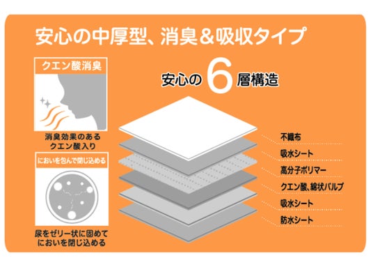 おしっこ2~3回分をたっぷり吸収できる、中厚型ならではの安心設計。