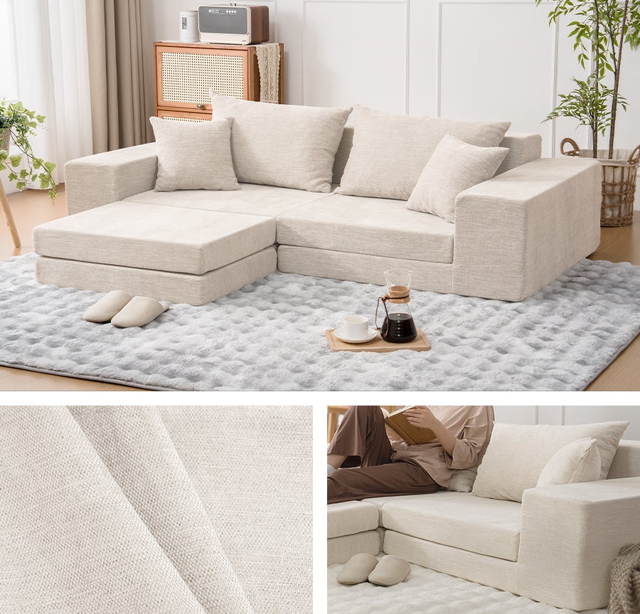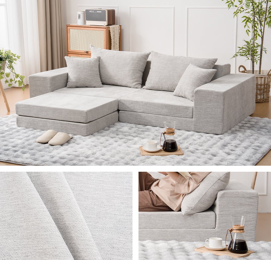 HOMFINEのモジュールソファは、日常のシーンに応じて変化し続ける、実用性と自由度を兼ね備えた設計です。