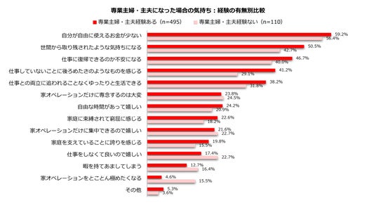1.前回調査より/専業主婦・主夫になった場合の気持ち:経験の有無別比較