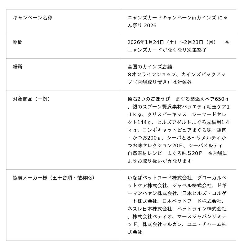 キャンペーンの詳細はこちら:https://img.cainz.com/jp/nyans_cardcp/index.html