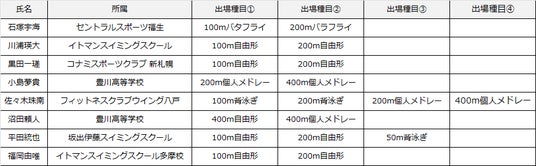 コナミオープン 水泳競技大会 実行委員会が開催する「第41回 コナミオープン 水泳競技大会」に招待選手・ネクストジェネレーション枠で23名の選手が出場することが決定しました。