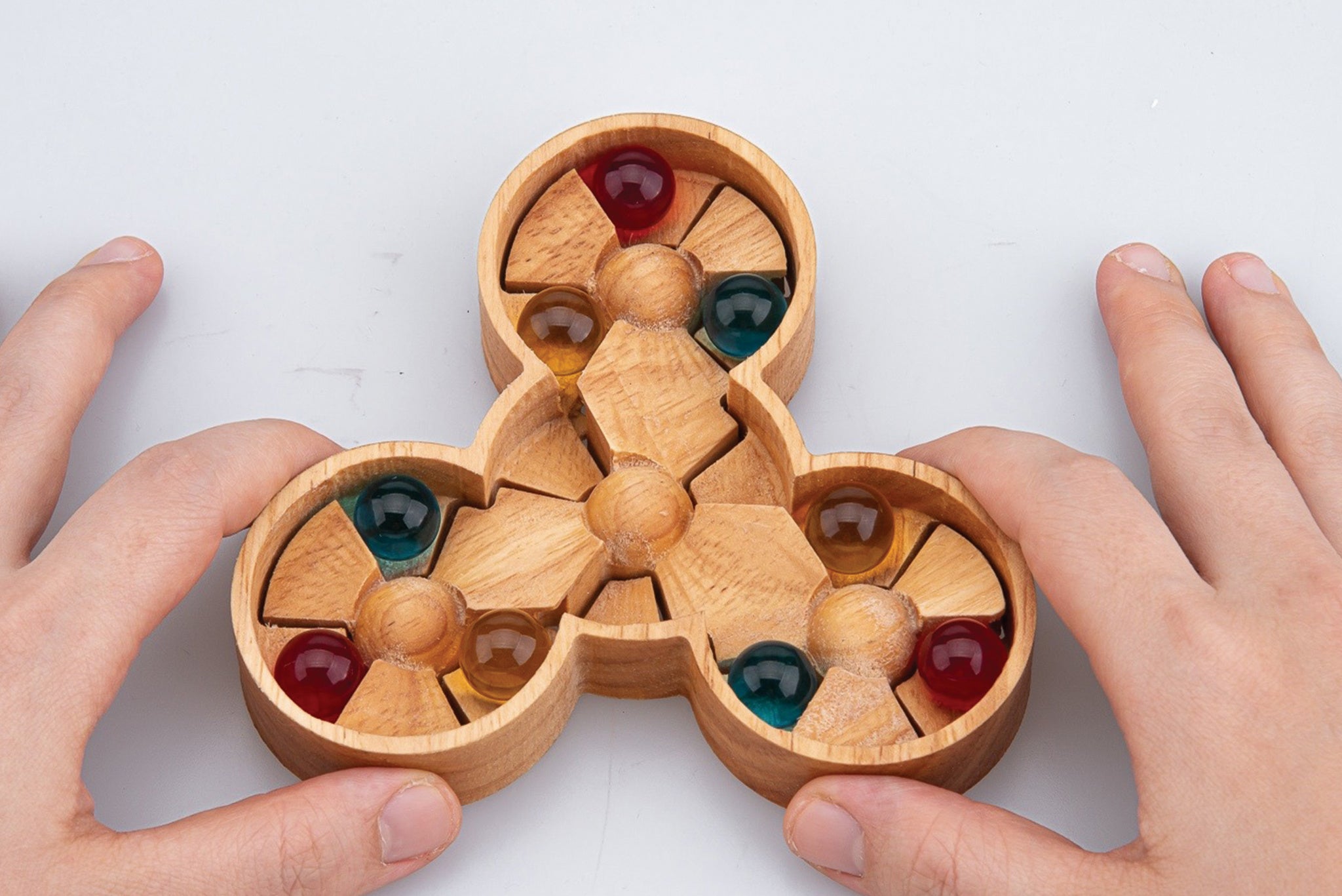 AlgoLoopビー玉を上下に動かすだけで、数学的な規則性に基づいた多様な動きを見せる木製の知育玩具。