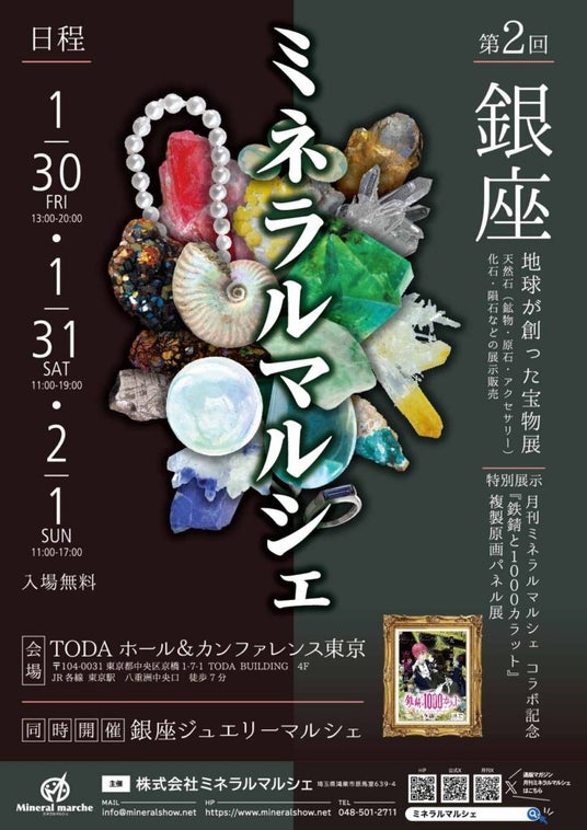 世界中から集まった天然石、宝石、化石、隕石などが一堂に会する「銀座ミネラルマルシェ」と、宝石をテーマにした本作『鉄錆と1000カラット』のスペシャルコラボレーションが実現します。