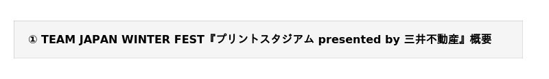 1. TEAM JAPAN WINTER FEST 『プリントスタジアム presented by 三井不動産』