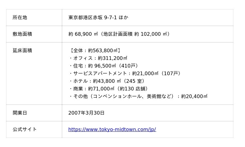 「東京ミッドタウン」は、かつて防衛庁があった土地にホテル(ザ・リッツ・カールトン東京)、文化施設(サントリー美術館、21_21 DESIGN SIGHTなど)、商業店舗、オフィス、住宅、医療施設、緑地などが集約された大規模複合都市です。