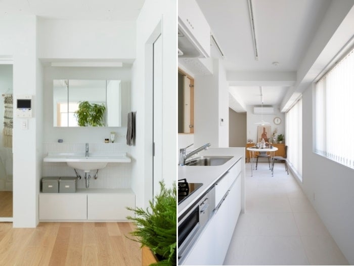 E1:変わらない本物の価値:素材や質感はシンプルで上質。多くの方に支持されるリノベーションの定番を追求しました。白い器のように余白のあるデザインは、住まい手に合わせて多様に変化し、インテリアや雑貨、アートが映える背景となります。※リノベーション価格(参考): 税込1,235万円程度~(60平方メートル の場合)