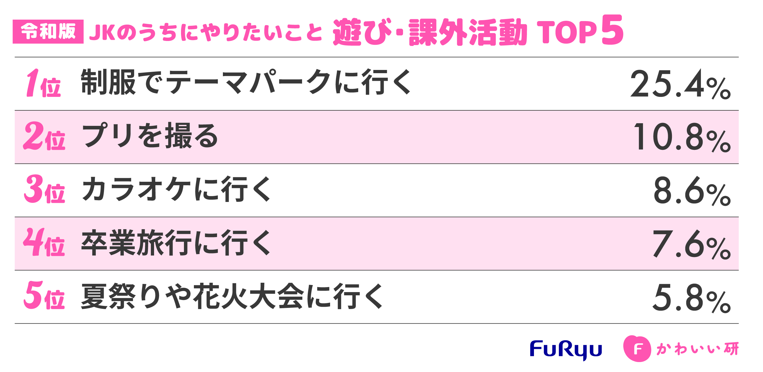 「令和版・JKのうちにやりたいこと」調査 遊び・課外活動 TOP5