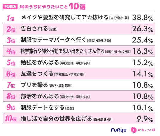 ■「令和版・JKのうちにやりたいこと」調査“やりたいこと10選”公開と考察:“自分磨き”と“思い出づくり”がキーワード