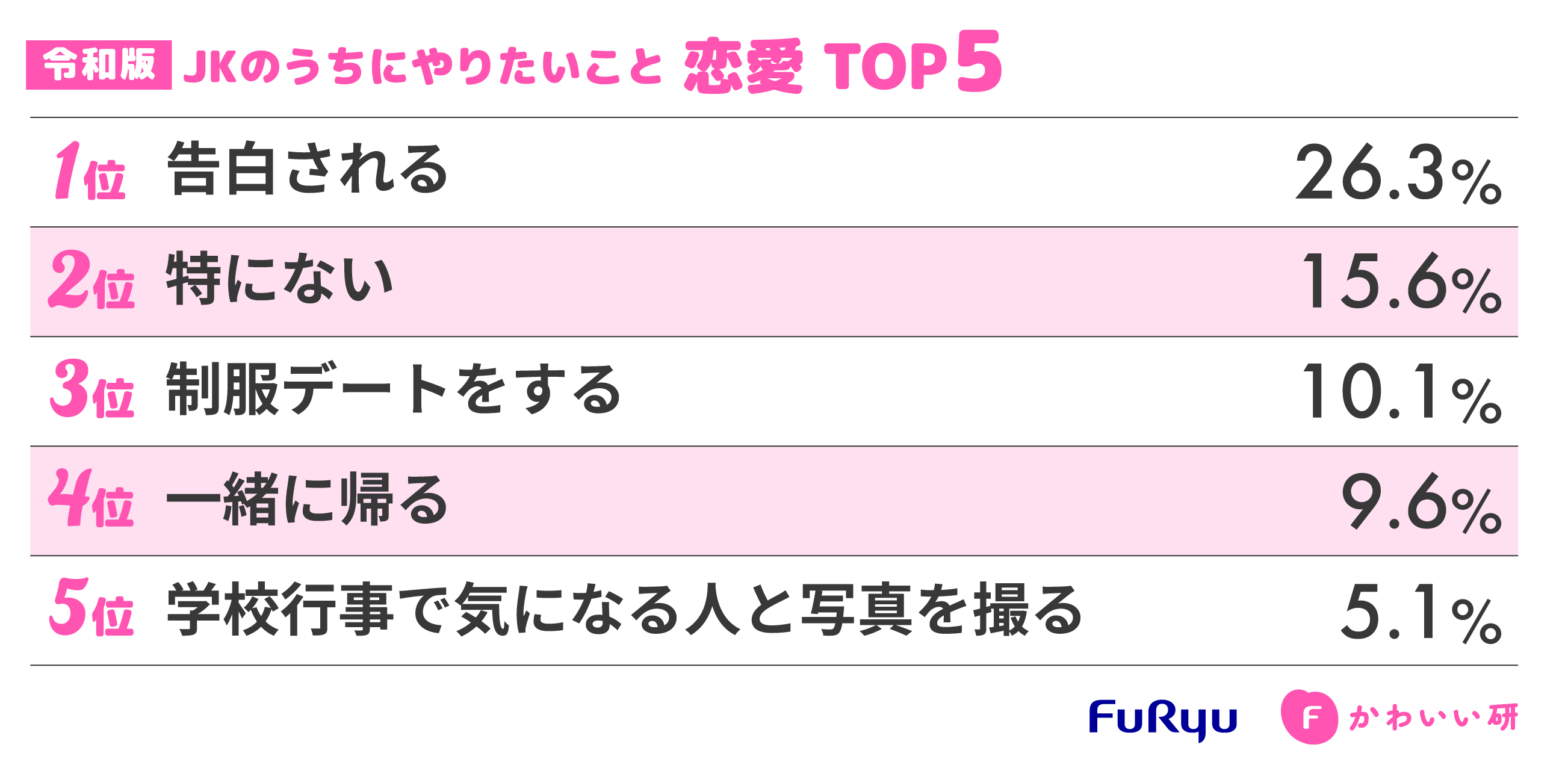 「令和版・JKのうちにやりたいこと」調査 恋愛 TOP5
