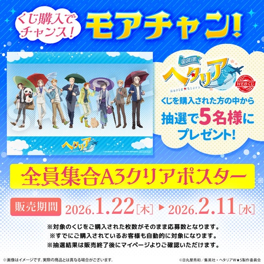 2026年1月22日(木)より、『【復刻版】アニメ「ヘタリア World★Stars」WEBくじ』の販売を開始いたしました。