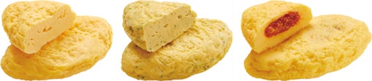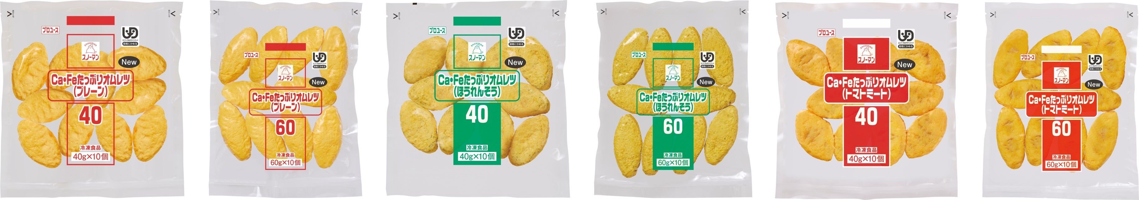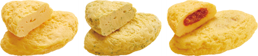 今回のリニューアルでは、オムレツの表面をなめらかにすることで、より手作りらしい形状に仕上げました。ラインアップは、さまざまなソースに合うようシンプルな味付けにした「プレーン」のほかに、ほうれん草を加えて彩りよく焼き上げた「ほうれんそう」と、トマトとひき肉のソースを包んで焼き上げた「トマトミート」の3種類です。そのままはもちろん、トッピングとしてもおすすめです。