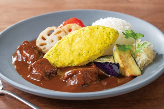 ほうれん草入りオムレツと彩り野菜のビーフカレー