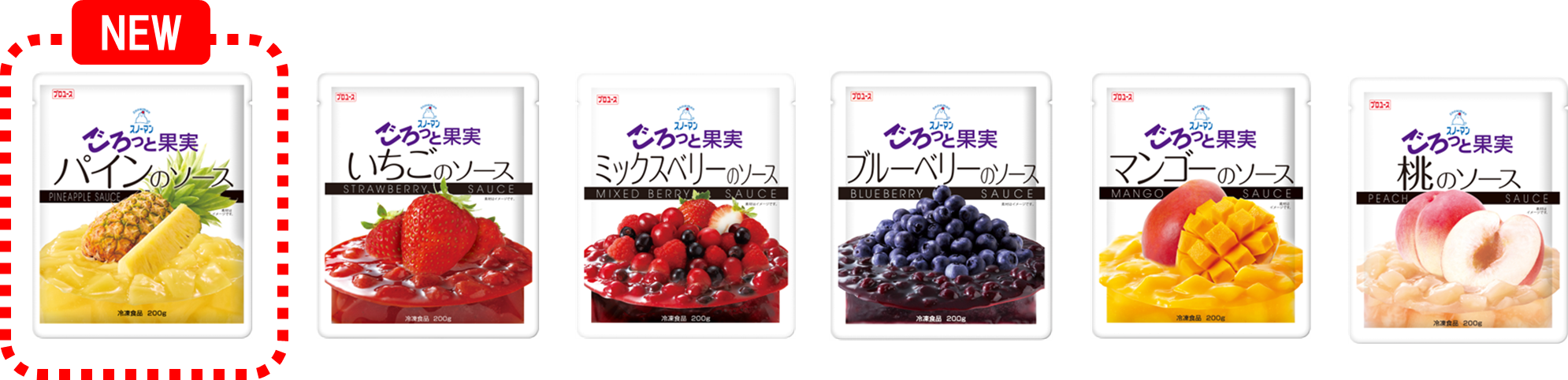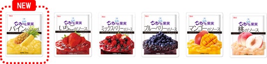 シリーズラインアップは、「いちご」「ミックスベリー」「ブルーベリー」「マンゴー」「桃」と新商品の「パイン」の全6品で展開します。