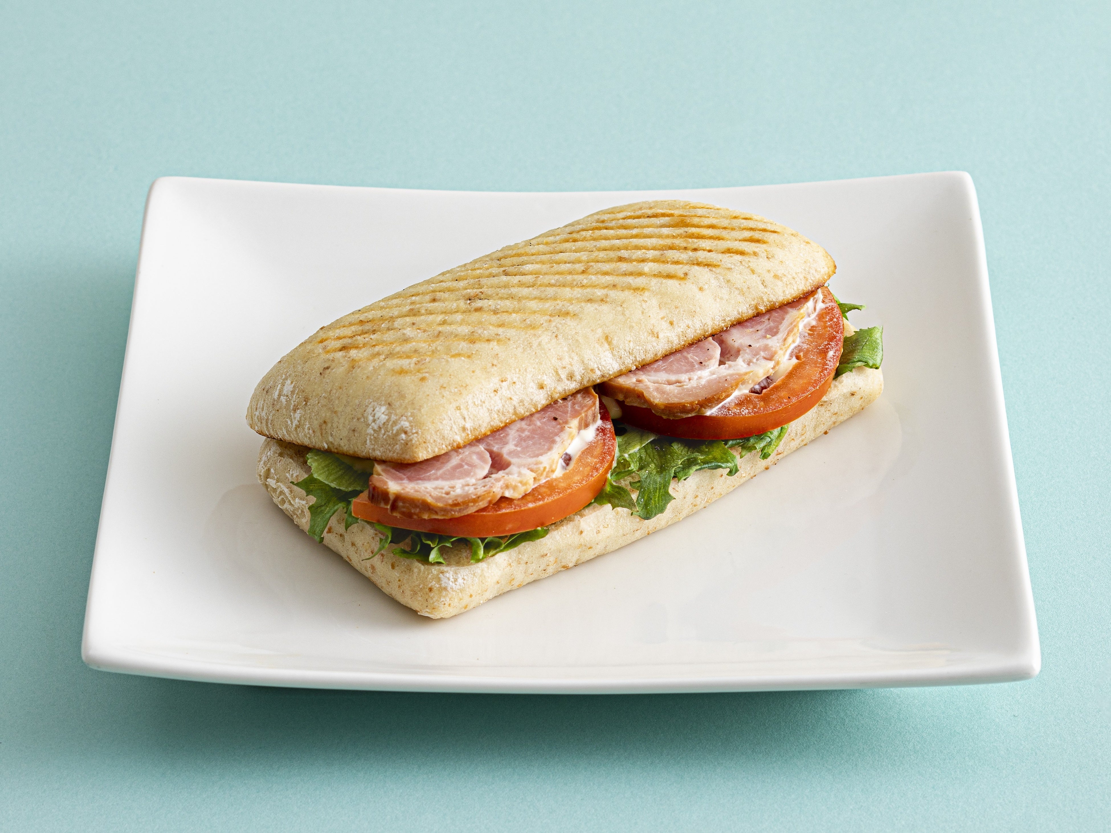 パニーニ(B.L.T) 530円/ベックスコーヒーショップ黄金バランスの定番BLTに、藤沢産トマトを使用。ベーコンの塩気とシャキシャキのレタス、完熟させて旨みが増した採れたてのトマトを、噛むほどに味わい深いベックスオリジナルのグラハム入りチャバタでサンドし、香ばしくプレスしました。