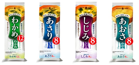 ひかり味噌株式会社※(長野県諏訪郡下諏訪町、代表取締役社長 林 善博、以下 当社)は、2026年春夏新商品として、『即席生みそ汁 わかめ 12食』『即席生みそ汁 あさり 8食』『即席生みそ汁 しじみ 8食』『即席生みそ汁 あおさ 8食』の4種の生みそ具入りタイプの即席みそ汁を2026年3月1日(日)より、全国のスーパーマーケットなどにて発売いたします。