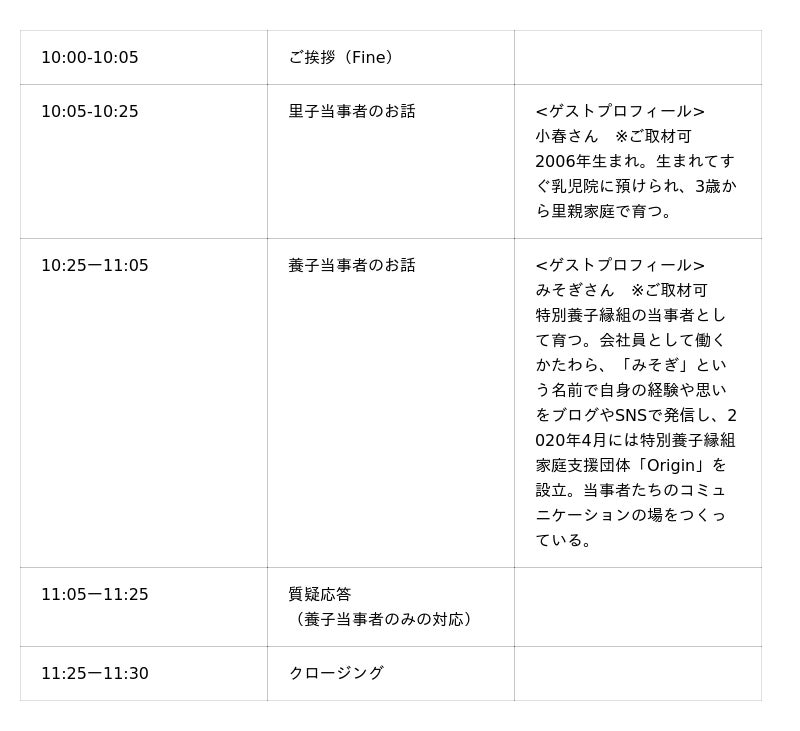 日本では、産みの親のもとで育つことのできない子どもの多くが施設で暮らしており、その子どもたちを家庭的な環境で育てることが社会的に求められています。しかし、日本では未だ諸外国に比べ血縁のない親子関係は理解されにくく、情報に接する機会も少ないのが現状です。実際に、これまでFineには「産む以外の選択肢を考え始めた頃には年齢が高くなっていて、養子縁組をあきらめざるをえなかった」など、実子以外の選択肢についてもっと早く知っていれば、という声が数多く寄せられていました。