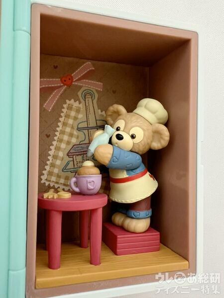 足台に乗って、ちょっと背伸びしながら、カップケーキのクリームを絞り出しているダッフィーが反則級にキュートです。