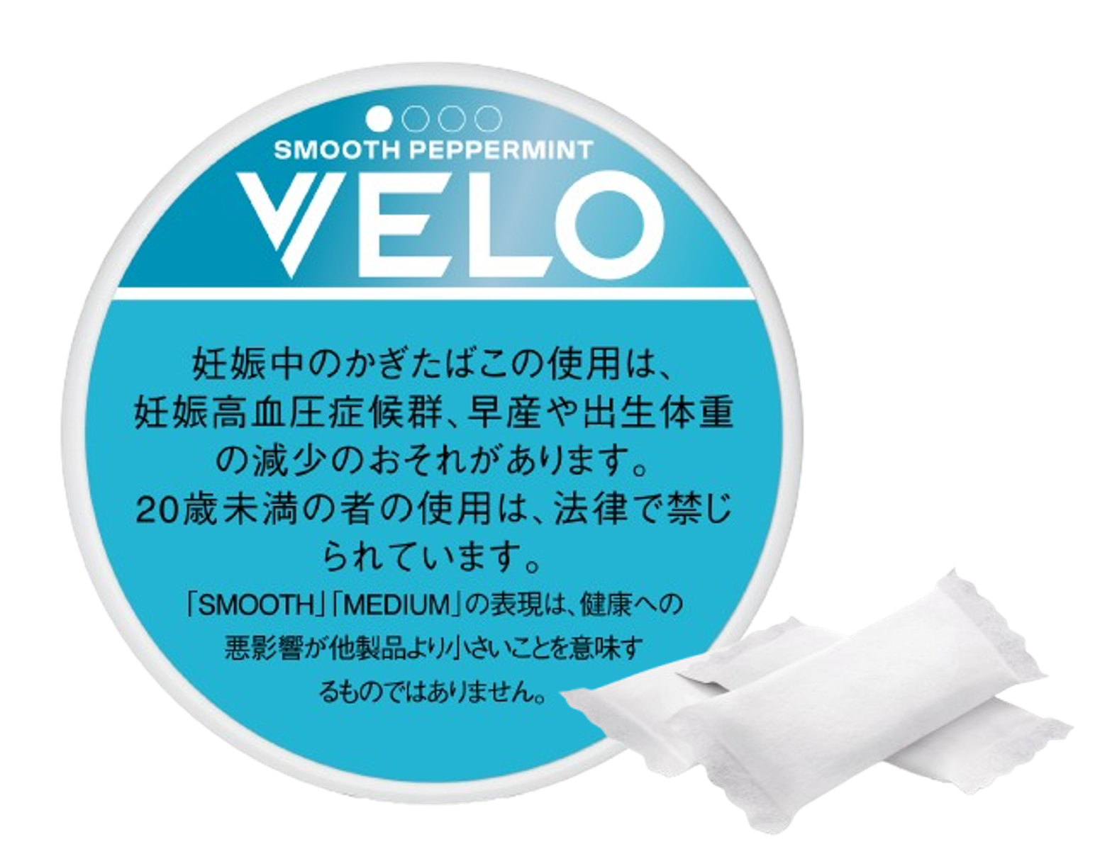 「VELO」は、たばこ葉のほか、水、植物由来成分、甘味料、アロマなどの厳選された材料が純白パウチに詰まっています。たばこ葉を燃焼も加熱もしないことから、煙もニオイも発生しない製品の性質上、改正健康増進法の対象外となっています。また、紙巻たばこと比較して有害性物質の発生が99%低減[5]されており、健康リスク低減の可能性を秘めた[6]選択肢の一つです。日本においては2020 年2 月に福岡県にて発売されて以来、販売チャネルを徐々に拡大しています。今後も、変化するお客様の好みや嗜好に合わせて多様な刺激・フレーバーの製品を、より身近な場所、そして親和性の高い使用シーンで購入いただけるよう展開してまいります。