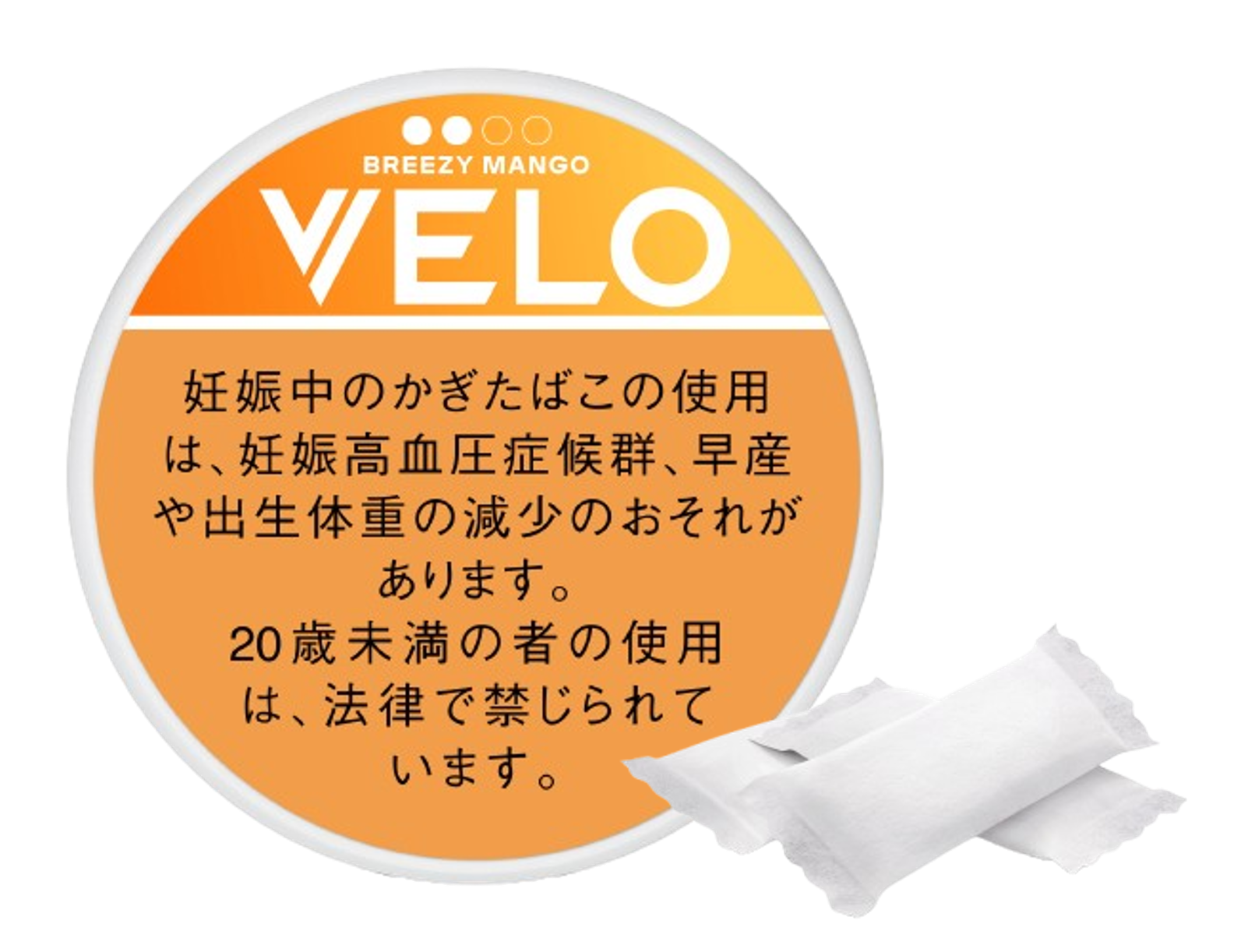 「VELO」は、白いパウチを、クチビルのウラにセットするだけで使用できるスウェーデン生まれの無煙たばこです。今回発売する2銘柄は、「VELO」を初めて使うお客様におすすめしたい、マイルド[1]なミントフレーバーからミディアムの製品と、ご好評いただいているマンゴーフレーバーで、より強いシゲキを求めるお客様の声にお応えしたインテンスの製品です。使用経験や嗜好の違いに応じ、お客様のニーズにお応えしたラインアップとなっています。