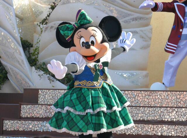 フリフリの衣装がとびきりキュートなミニーマウスは、華麗な足さばきで素敵なアイリッシュダンスを披露。