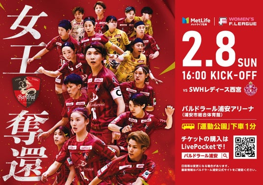 2/7(土)、2/8(日)メットライフ生命女子フットサルリーグ2025-26ファイナルシーズン浦安開催試合の観戦チケット販売につきましては、LivePocket-Ticket-(電子チケット)での先割、前売り販売および、当日券販売とさせていただきます。