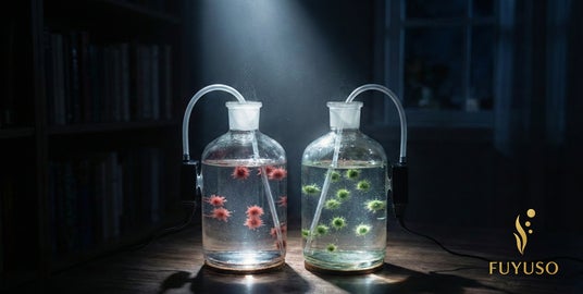 『FUYUSO』最大の特徴は、ボトルの中で藻類が煙のように、あるいは雲のように漂い続ける「浮遊感」です。均一に混ざり合うのではなく、有機的な濃淡を描きながら留まるその姿は、見る角度によって表情を変える生きた抽象画のようです。