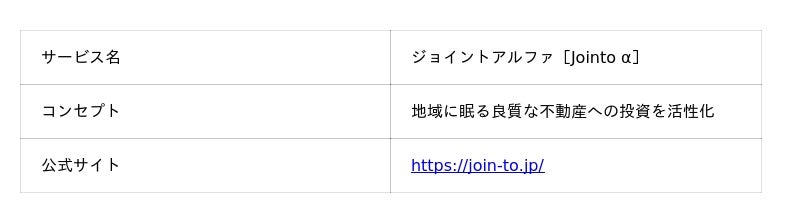 【ジョイントアルファ[Jointo α]サービス概要】