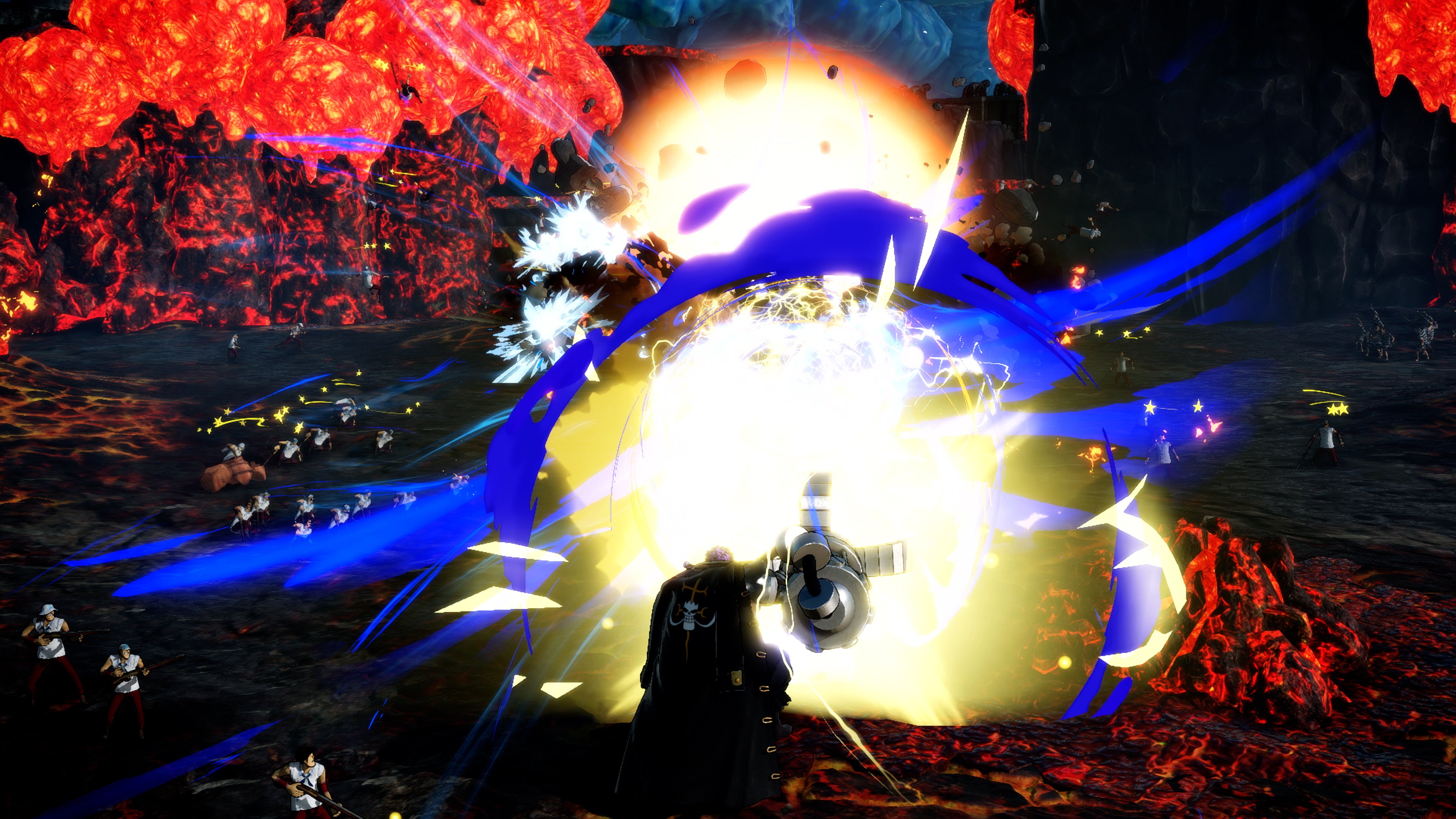 本作は、「リアルなONE PIECEの戦場体験」をコンセプトに、アクション中に破壊される建物や土煙が漂う空気感など「ONE PIECEの戦場体験」を追及!従来の「海賊無双」では出来なかった「破壊アクション」「空中無双アクション」「フォルムチェンジ」などの新要素を盛り込むことで、これまで以上に爽快な『ONE PIECE』無双アクションを実現しています。ひとつなぎのドラマ体験!!