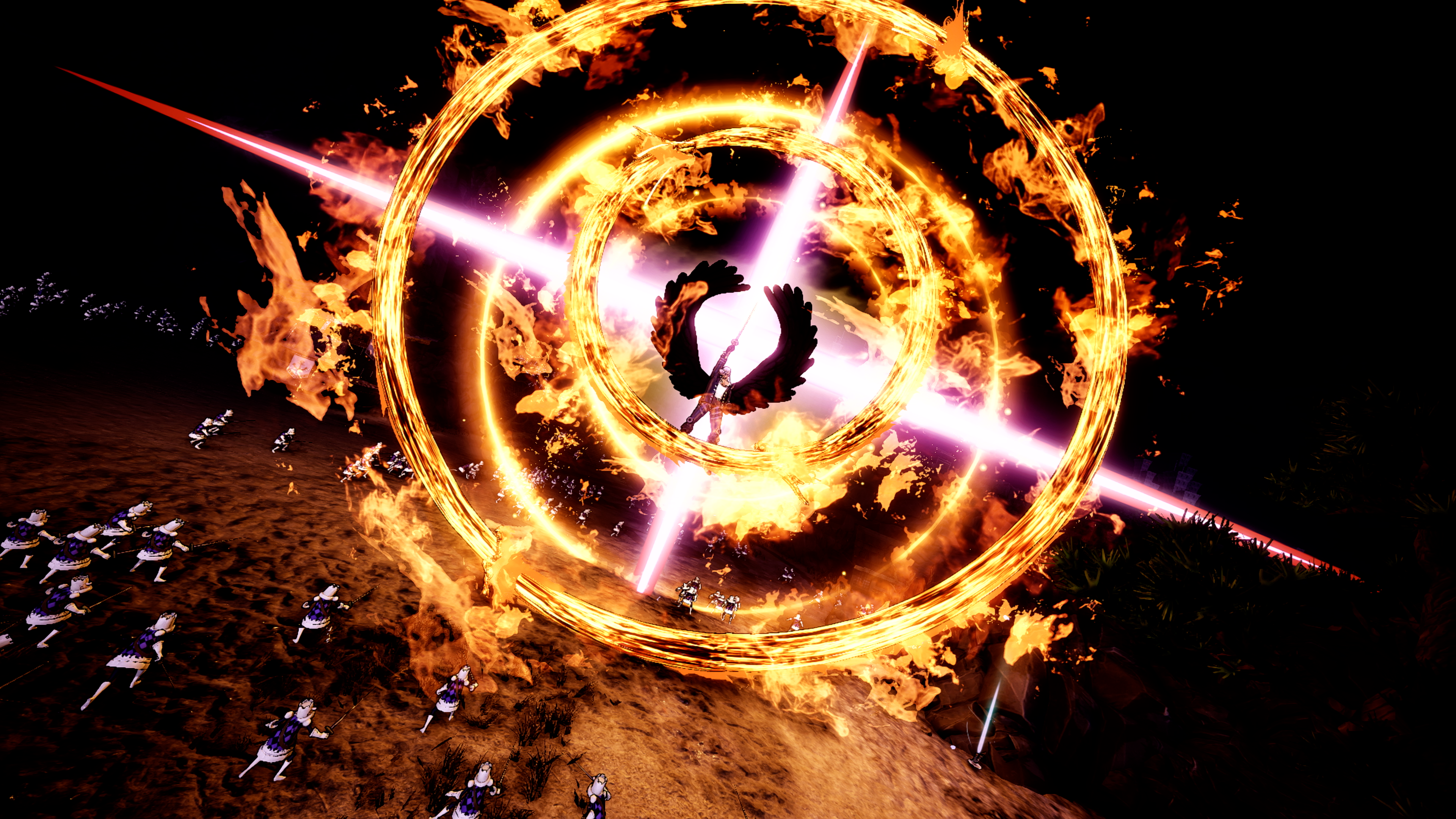 人型状態では刀、蹴り、拳を用いて、人獣型状態では翼を用いた広範囲の攻撃で戦場を火の海に変えて敵を壊滅させることができる。