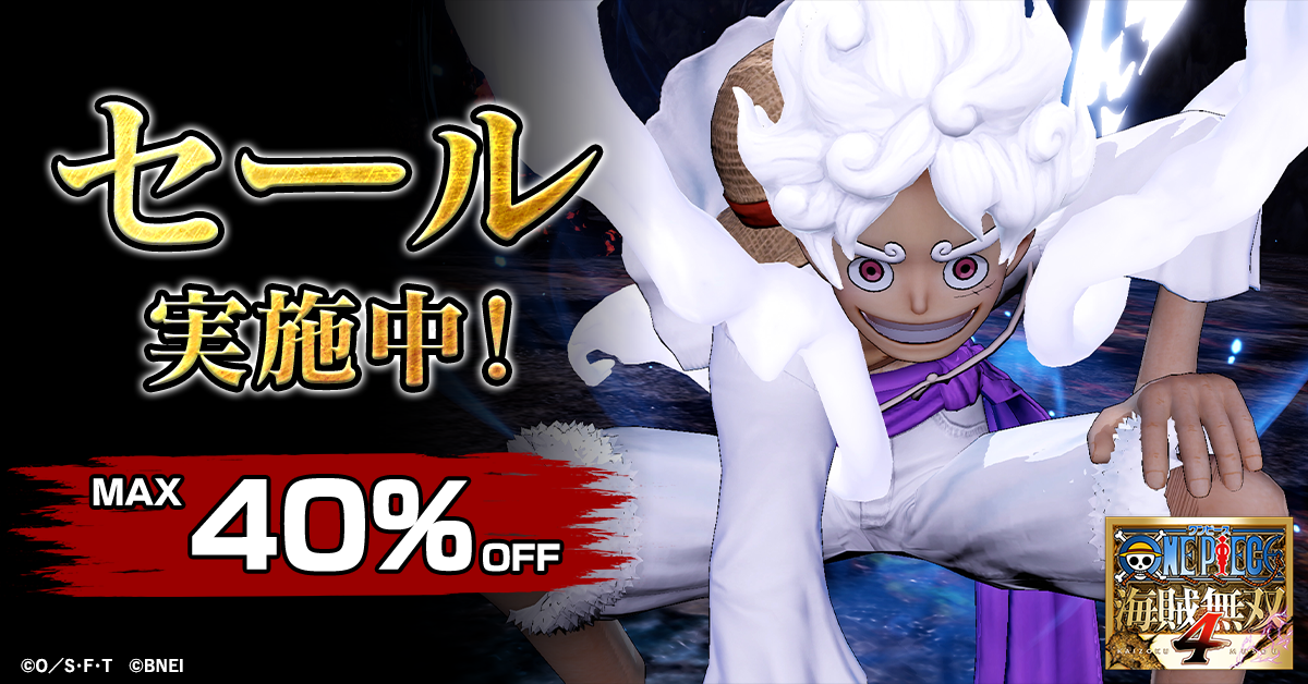 最大40%オフのお得なセールも実施中!ゲーム本編とギア5のルフィなどを含むDLCがセットになったパックも対象なので、この機会にぜひ爽快無双アクションをお楽しみください。