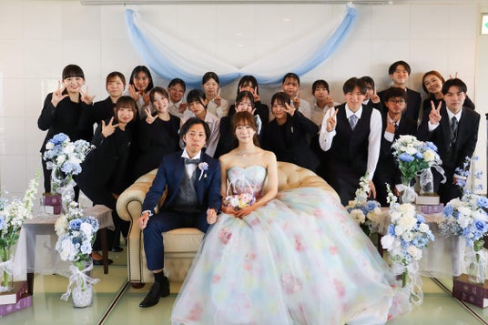 本イベントは毎年実施している取り組みで、学生が新郎新婦の想いに寄り添い、結婚式の企画・演出・運営までを実践的に学ぶ教育プログラムです。今年は本校公務員科卒業生である新郎が、在学時の担任の勧めをきっかけに本企画へ応募。学生時代の友人を招きながら「アットホームな雰囲気の披露宴を行いたい」「学生による手作りの結婚式に協力したい」という想いから実現しました。