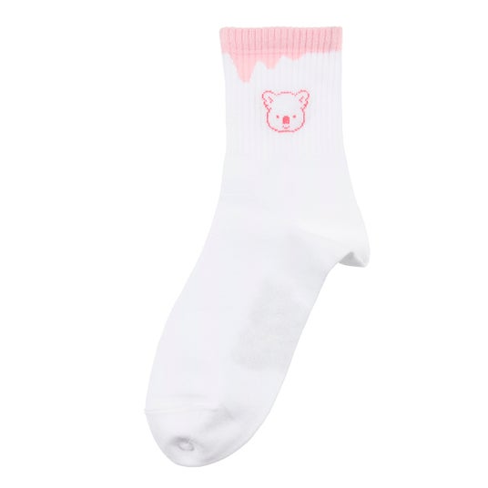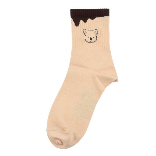 チョコレートが溶け落ちているようなトップ部のデザインに、コアラのマーチくんの顔をあしらったカジュアルなリブソックスです。