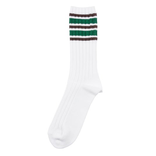 『コアラのマーチ』のパッケージを彷彿させるグリーンとブラウンのラインソックス。